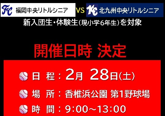 福岡中央リトルシニアは福岡市近郊の中学生(シニア)硬式野球チームです。